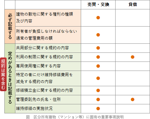 - 対象物件が、建物の区分所有等に関する法律第2条第1項に規定する区分所有権の目的である場合、Aは、同条第4項に規定する共用部分に関する規約の定めがあるときはその内容を説明する必要があるが、当該規約が未だ案であるときはその内容を説明する必要はない。