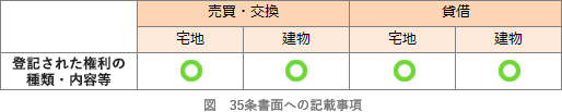 - 違反する。物件に登記された権利の種類と内容等については、売買・交換、貸借を問わず重要事項で説明しなければなりません(宅建業法35条1項1号)。