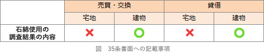 - 建物の売買の媒介を行う場合、当該建物について、石綿の使用の有無の調査の結果が記録されているか照会を行ったにもかかわらず、その存在の有無が分からないときは、宅地建物取引業者自らが石綿の使用の有無の調査を実施し、その結果を説明しなければならない。
